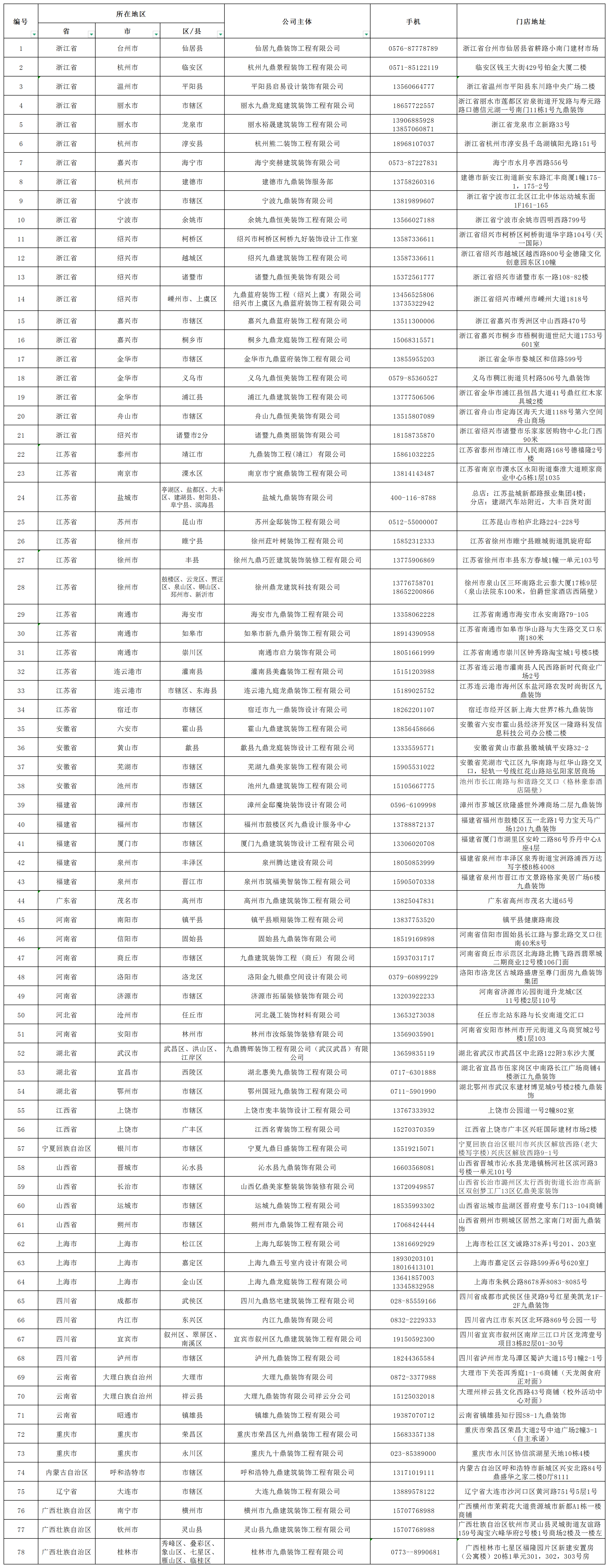 九鼎裝飾公司通訊錄