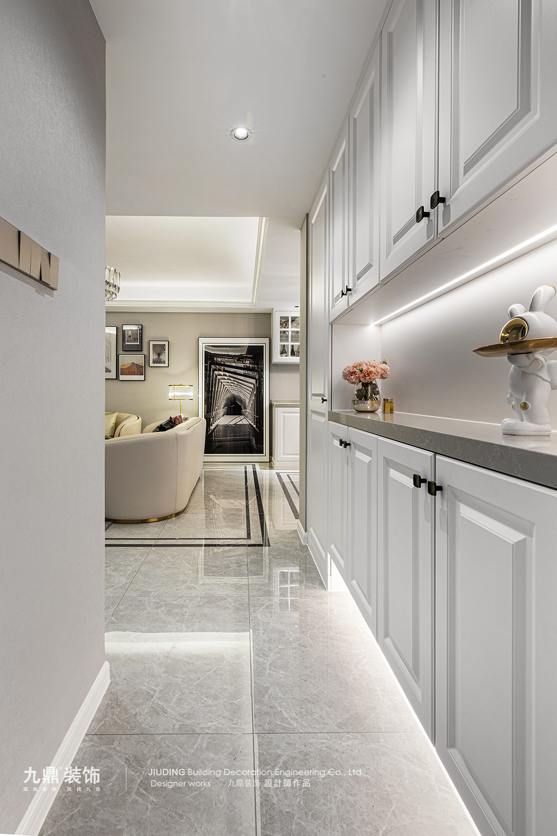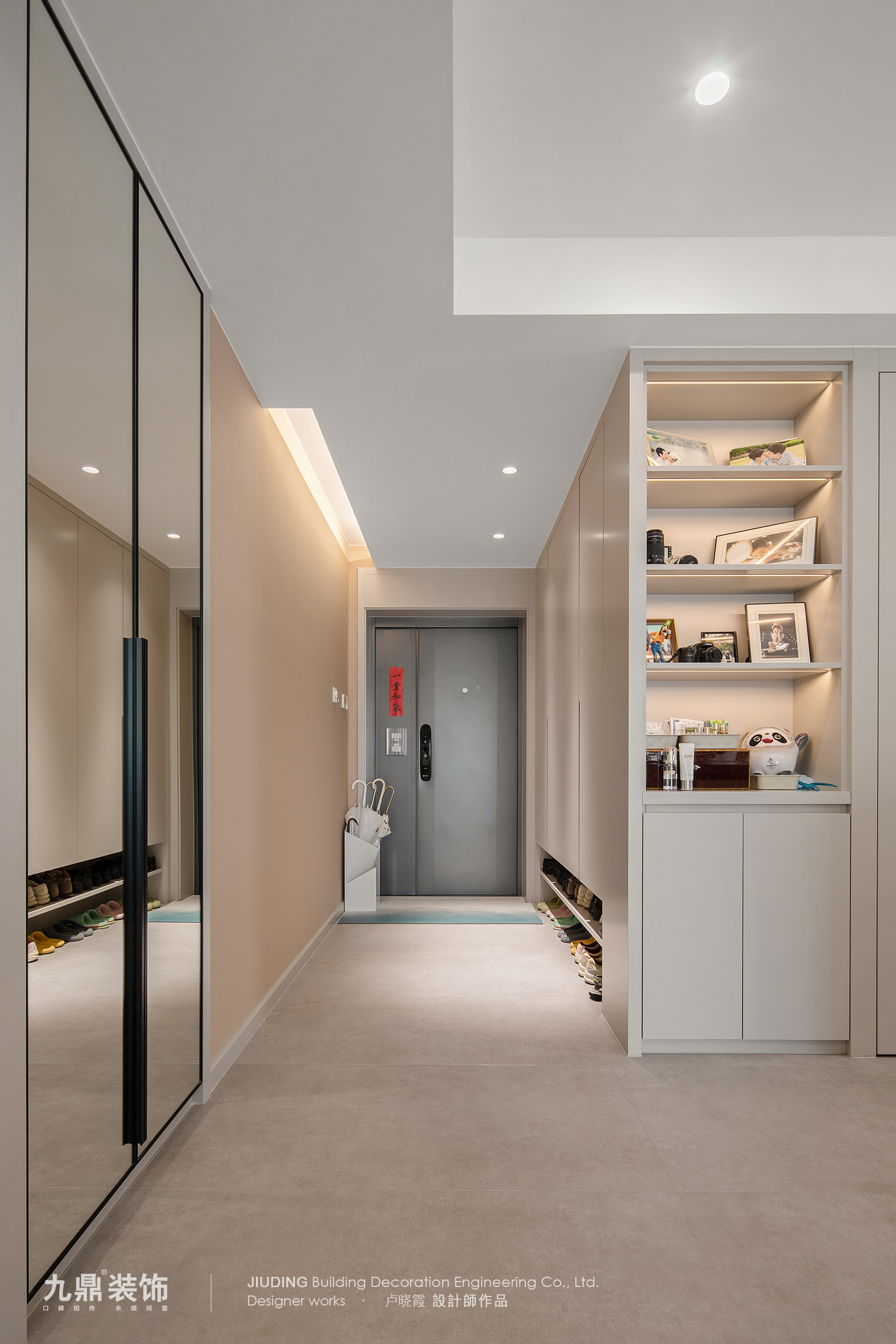頂天立地玄關柜: 這是標配。中間留開放式凹槽放鑰匙、快遞,下方懸空15-20公分放常穿鞋,內部用活動層板,方便調節,容納高跟鞋、靴子。別忘了預留一個高柜,收納長柄雨傘、吸塵器等。