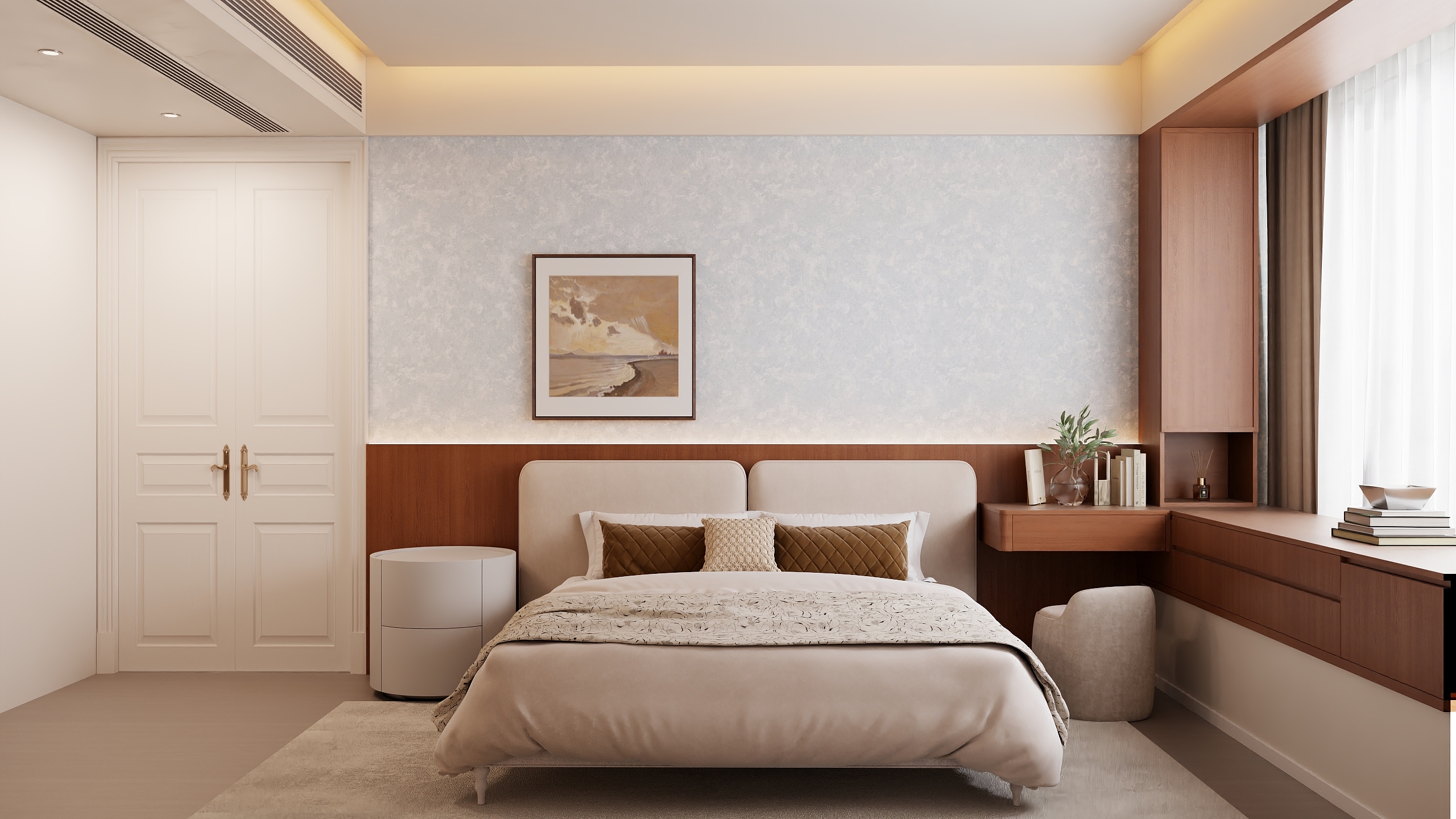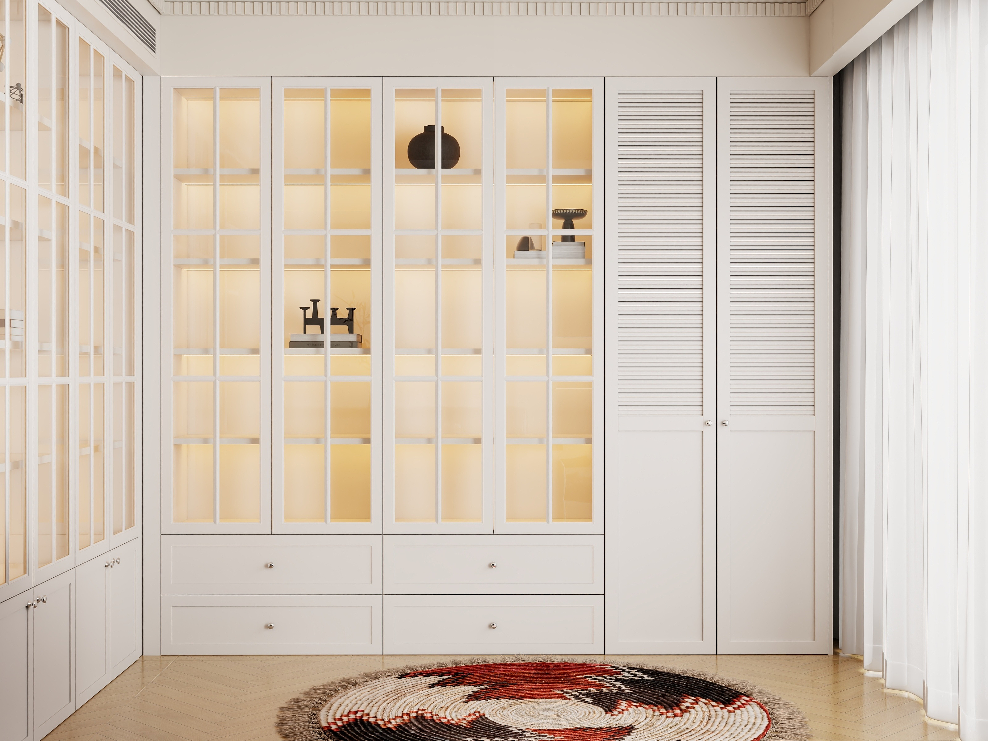 我們倡導 “設計先行,軟硬一體” 。在設計初期,就將定制柜的立面與軟裝的色板、材質樣本進行整體搭配模擬,確保從色彩、材質到比例的統一。我們的全案團隊會統籌從硬裝施工到軟裝定制的全流程,確保每一件定制產品在正確的時間節點測量、生產、安裝,避免銜接失誤,讓您在杭州的家,從骨骼到肌膚都完美契合。