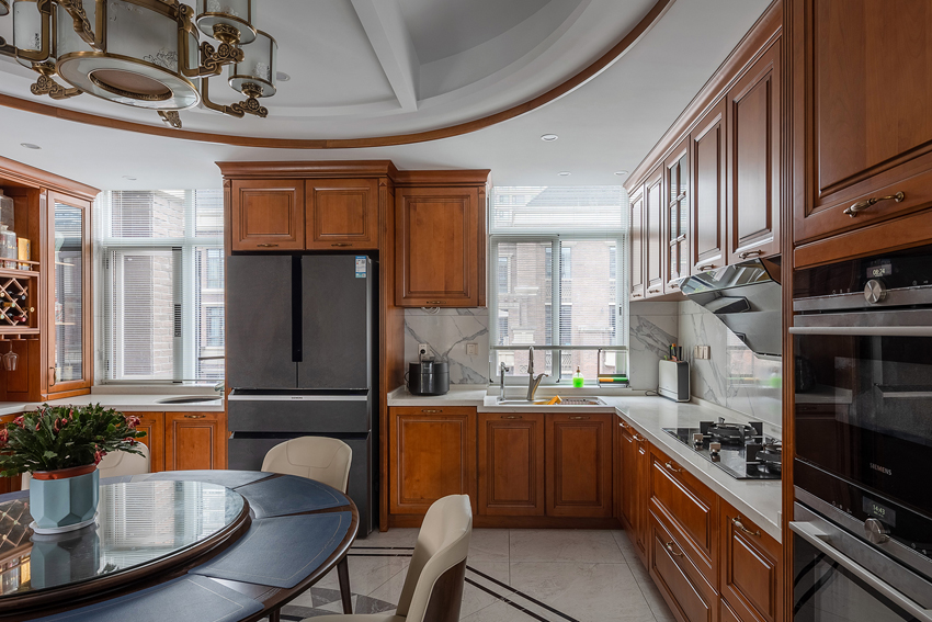 6、廚房裝修時,不要選擇木質,木質地板難打理,養護起來也很麻煩,而且廚房與火水打交道,出于安全考慮,最好不要選擇木質地板,如果使用煤氣罐,最好設計一個煤氣罐位置。