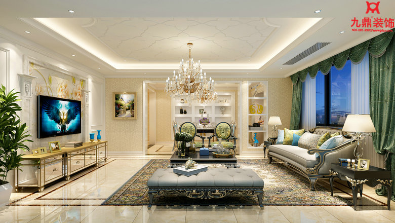杭州杜湖名庭200㎡法式中古風裝修案例效果圖
