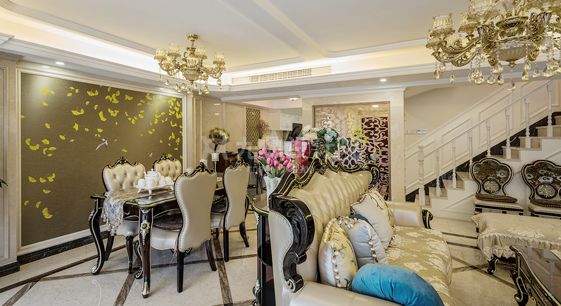 杭州杜湖名庭200㎡法式中古風(fēng)裝修案例效果圖