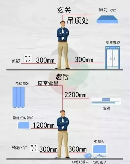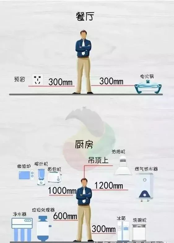 如果你覺得上面的表格比較抽象的話,我們再來看一下插座布置高度圖表,這樣你該對插座安裝位置一目了然了: